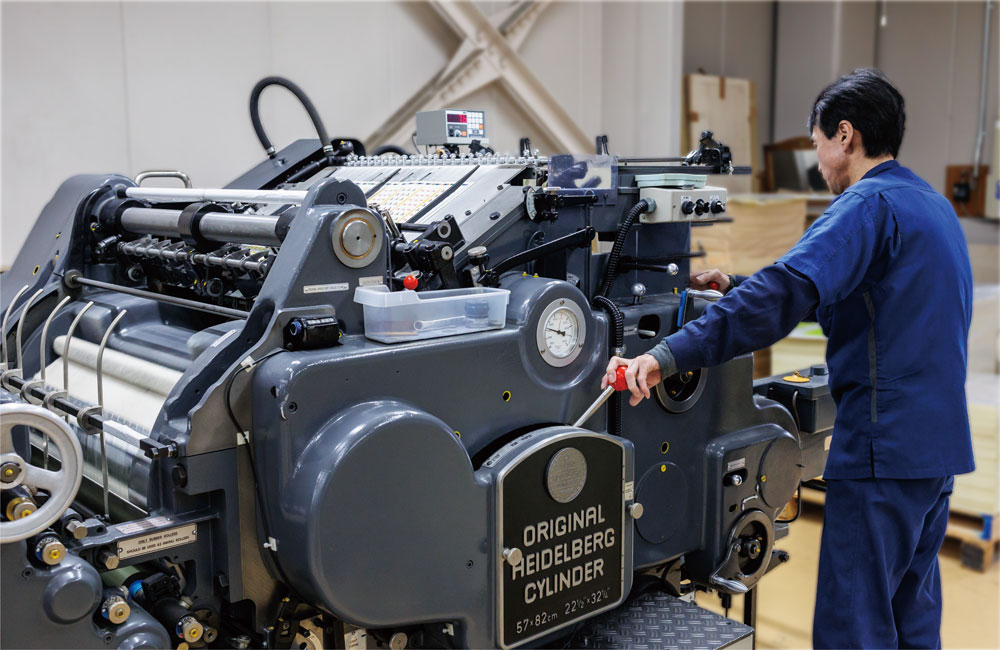 弊社では一番大きな機種ハイデルベルグSBBを3台設置しています。小型のKSBが4台あり、それぞれに機長がいますが、大型のSBBはみんなで自由に使えるフリーの機種としています。