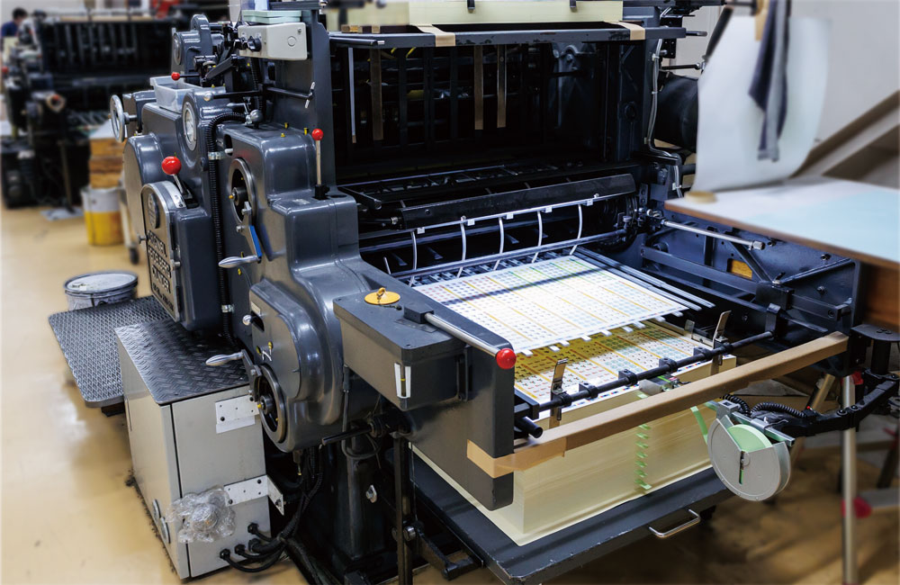弊社では一番大きな機種ハイデルベルグSBBを3台設置しています。小型のKSBが4台あり、それぞれに機長がいますが、大型のSBBはみんなで自由に使えるフリーの機種としています。